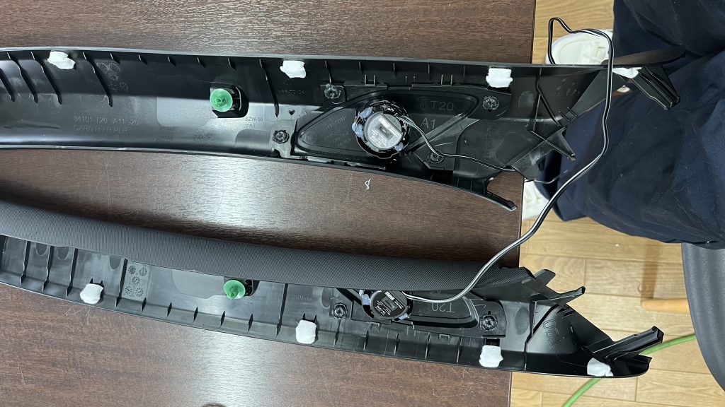 純正トィーターはピラーにあるのでピラー外して交換、交換するトィーターにリング付けてホットボンドで点どめしてから