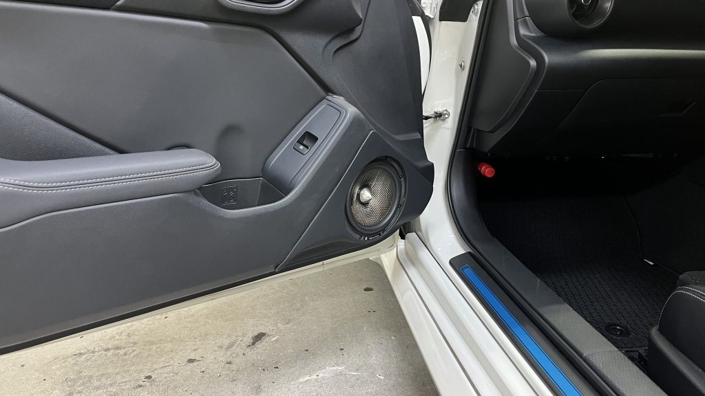 ビタッとドアトリムに沿ってましたがなぜか隙間ができてたのでアウターバッフルを切断して修正