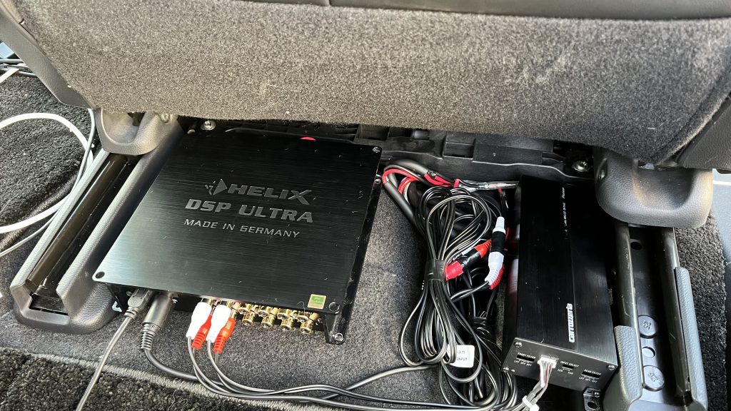 DSPは豪快一点主義的なヘリックスのウルトラ、アンプはカロッツェリアのGM-D1400Ⅱ!ハイブリットなのでシート下狭くこれでもギリギリな感じ