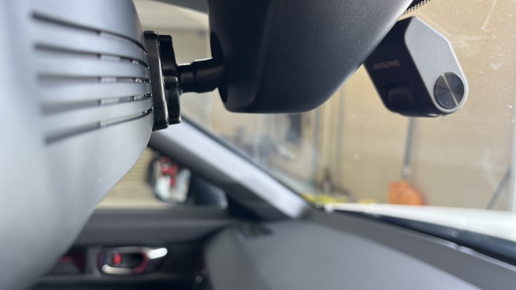 こちらもインナーミラーは根本から交換してますので見た目は純正みたいな状態、前方のカメラは運転席に座っても見えないので視界を邪魔する事なくスッキリ