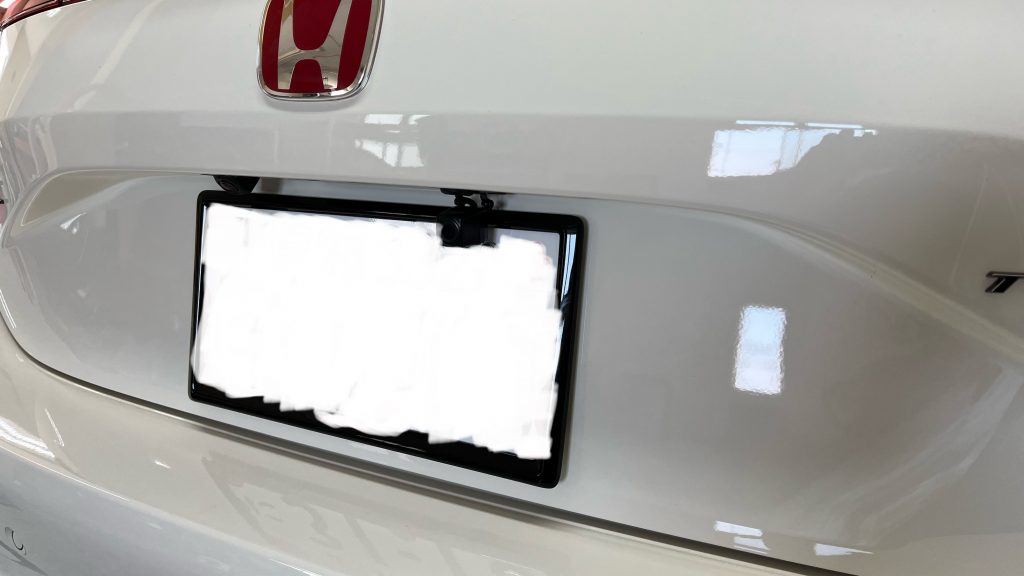 リアカメラは外付けのタイプをナンバーの上に取り付けてます。FL5はリアウィングが大きいのでリアカメラを室内に取り付けるとリアの映像にウィングが映るので外付けがオススメ
