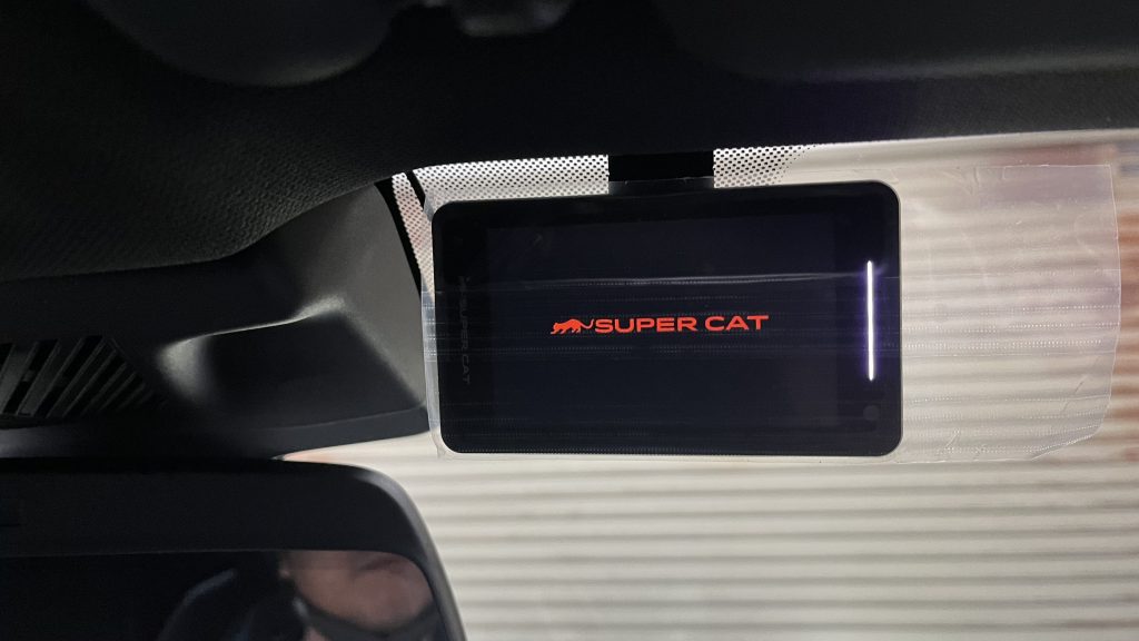 ダッシュボードに置くのじゃなくフロントガラス上部に取り付けるのはもはや定番