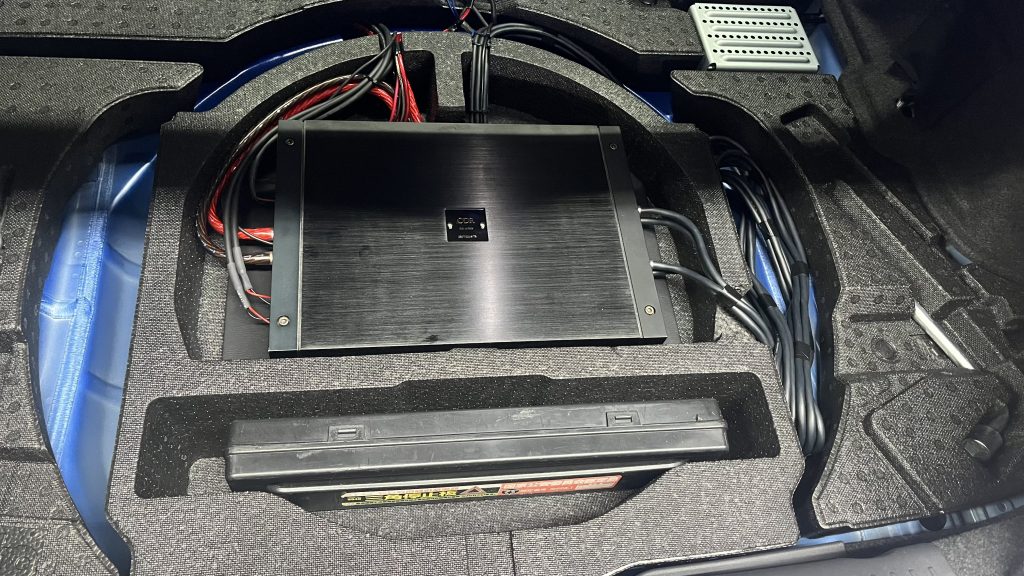 周りの発泡スチロールの高さを超えるとこの上に載る純正のボードが入らなくなるので配線が通るところは発泡スチロールを切って干渉しないように配線。これが結構大変で見えてる所は配線が通ってる場所だけですが発泡スチロールの裏側もザクザク切ってます!苦労あって純正ボードを乗せると真っ平