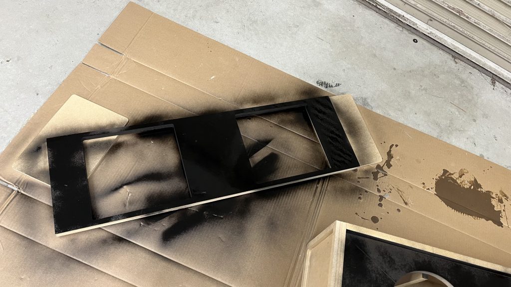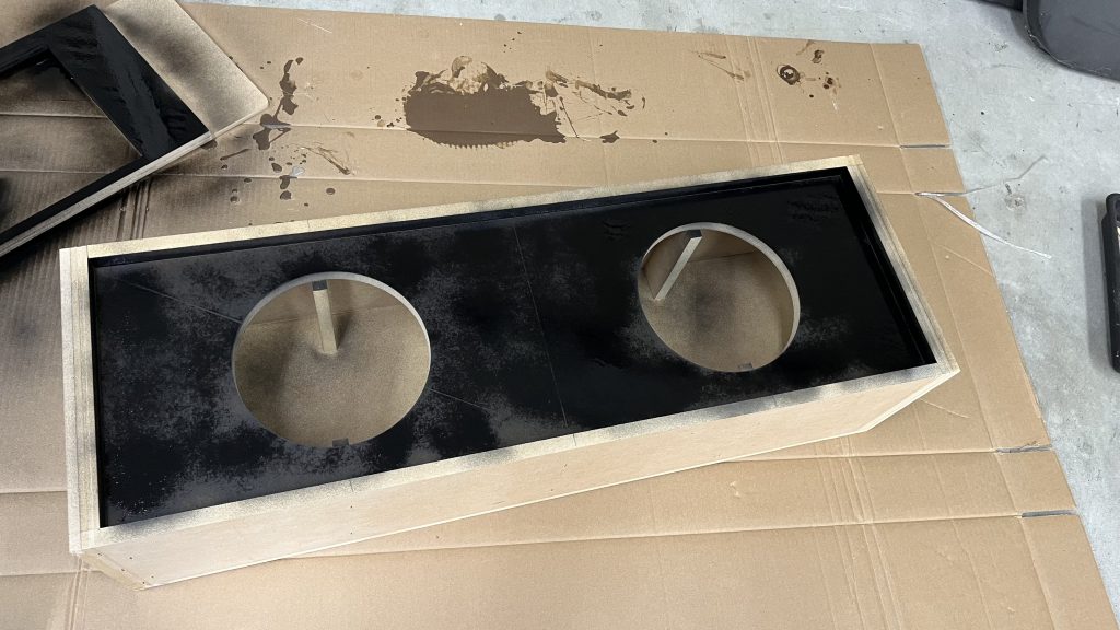 生地を貼る前に隙間から木が見えてたらカッコ悪いので見えそうなところは黒く塗って