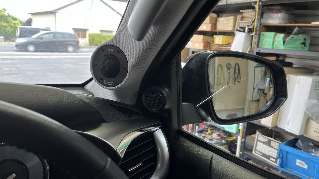 ピラーに取ってがあるのでこのぐらいの高さが限界ですかね、あまりトィーターを主張しない角度で取り付けましたがトィーターが大きいので主張してます!