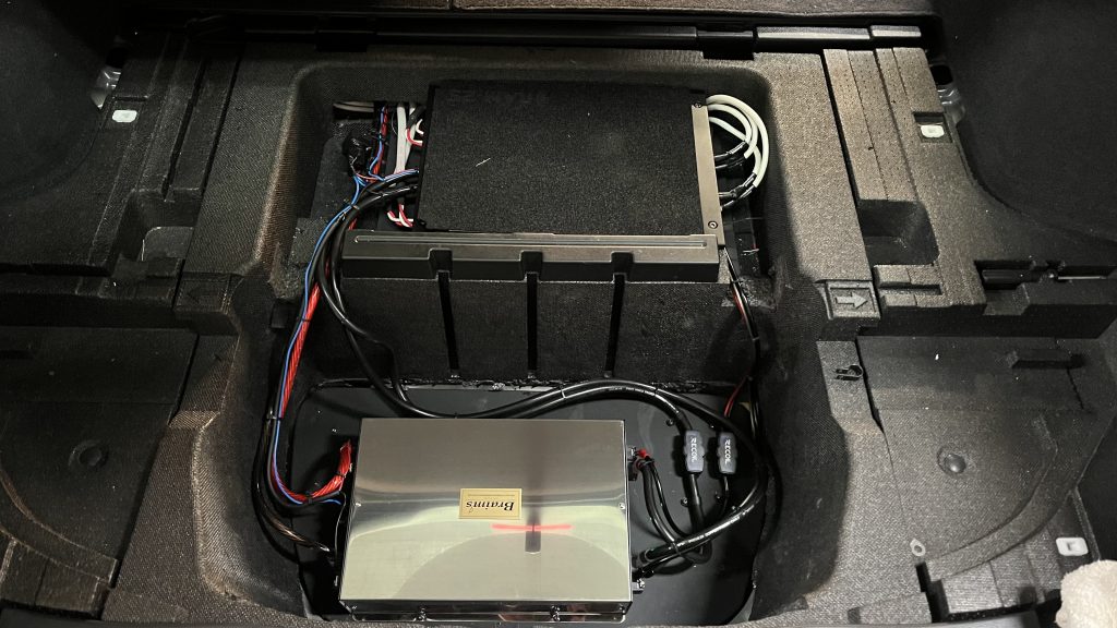 定格出力120Aで大体のシステムはこれ1台で安定した電気でオーディオ機器を動かすことができます。今まで車両のバッテリーからオーディオ機器に繋げてたのを全てブレイムスの電気に替えるのでナビ・DSP・アンプ等々までケーブルの引き直し。ナビのACC、イルミもリレーを入れてるので車両の電気とは完全に分かれています
