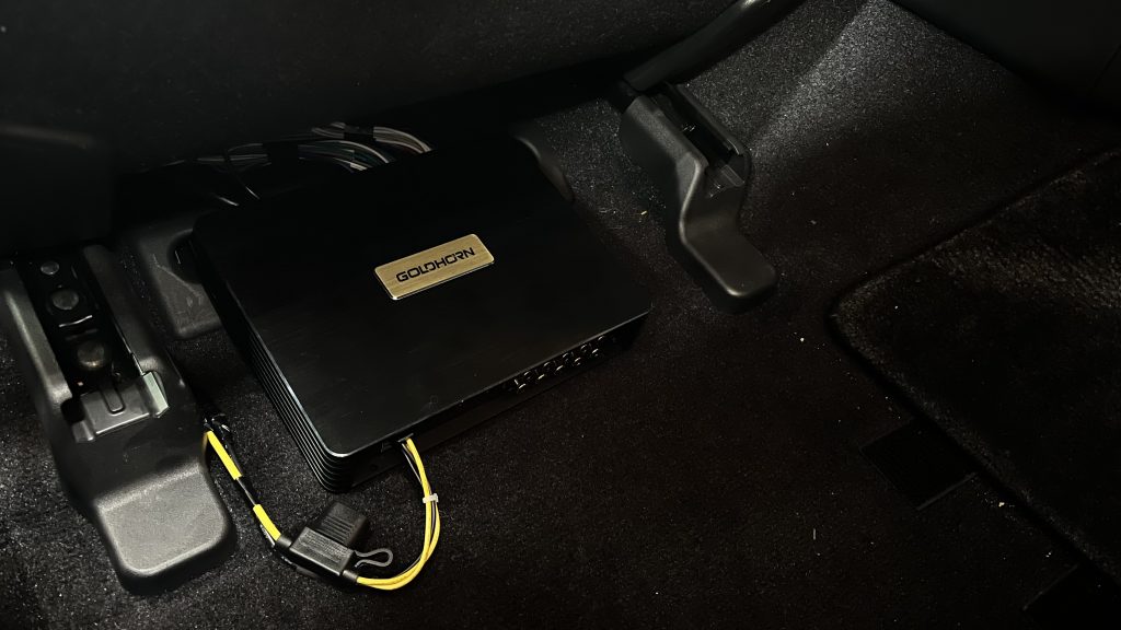 DSPは助手席下に取り付け、DSPはゴールドホルンの810プロ。ゴールドホルンはBluetooth内蔵なので直接DSPに繋げれるのが良いですね