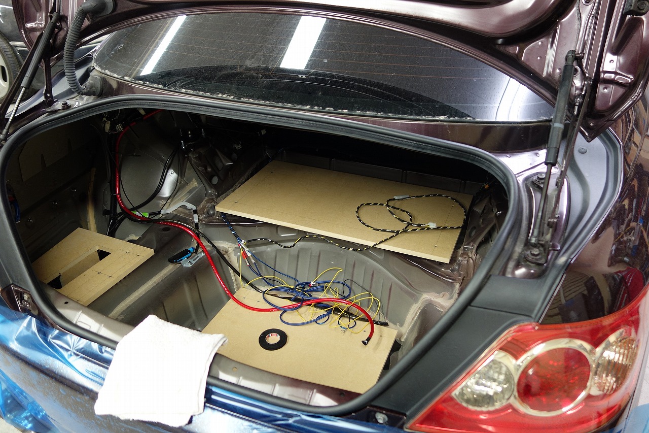 凸凹したトランクをフラットにするために水平みて平らな土台を作っていきます