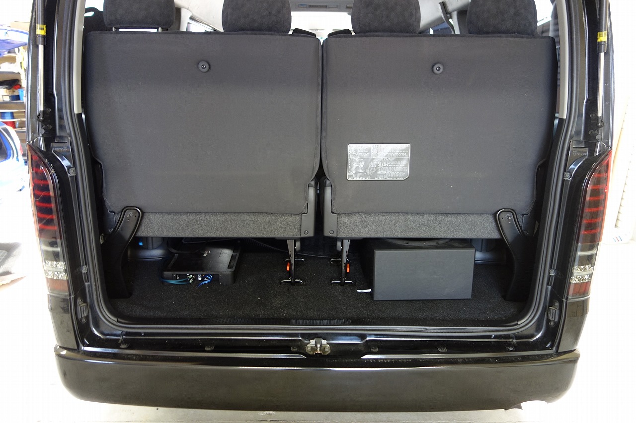 サード下にアンプとサブウーファーを設置でしたがまーハイエースのロング長い長い(笑)