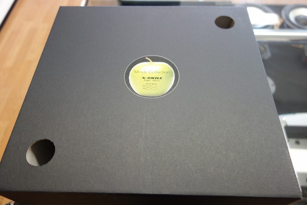 箱を開けるとマインズカンパニー坂本氏により方向性を徹底管理されたN-SKILL電源ケーブルがあらわれる
