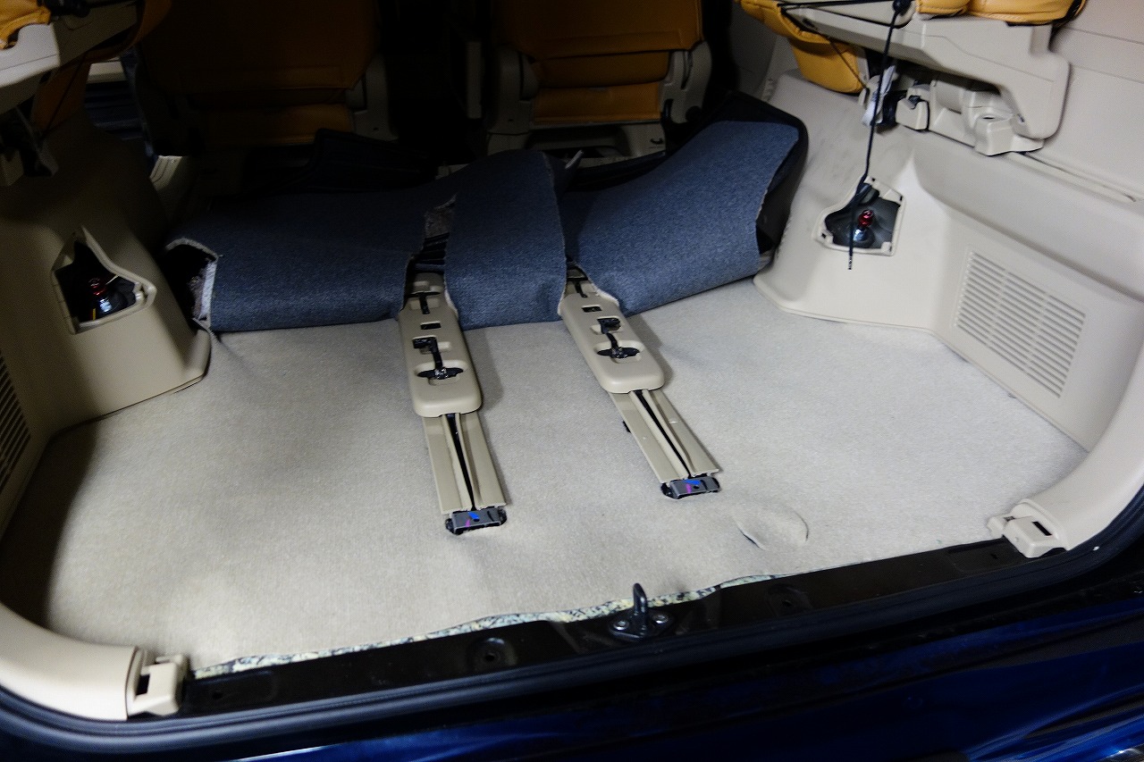 移住空間を確保しエアータンク、コンプレッサー、バルブ等を取り付けでラゲッジもフラット!