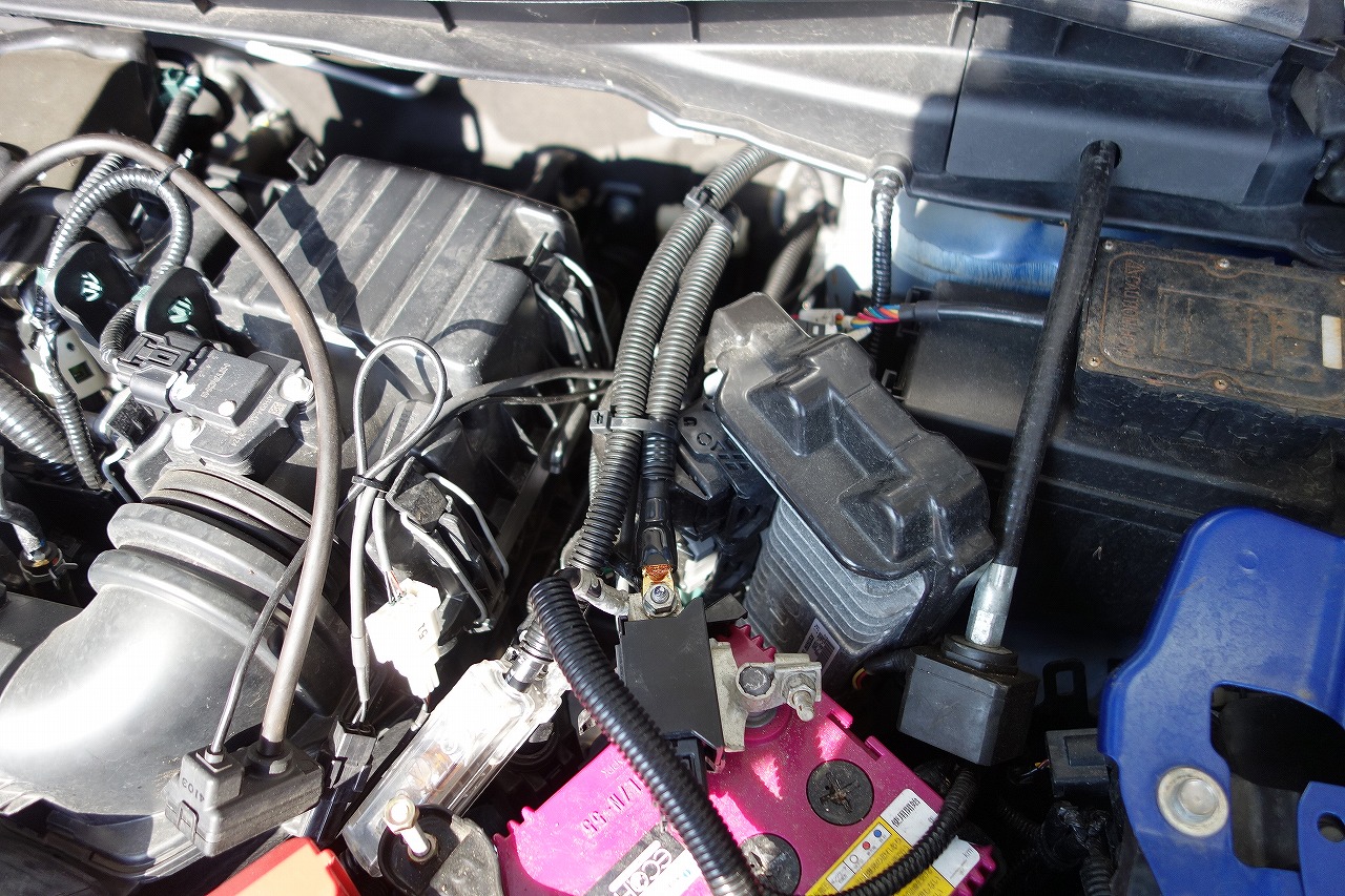 写真で見てもコルゲートチューブに囲まれて見えませんがN-SKILLに交換してあります!