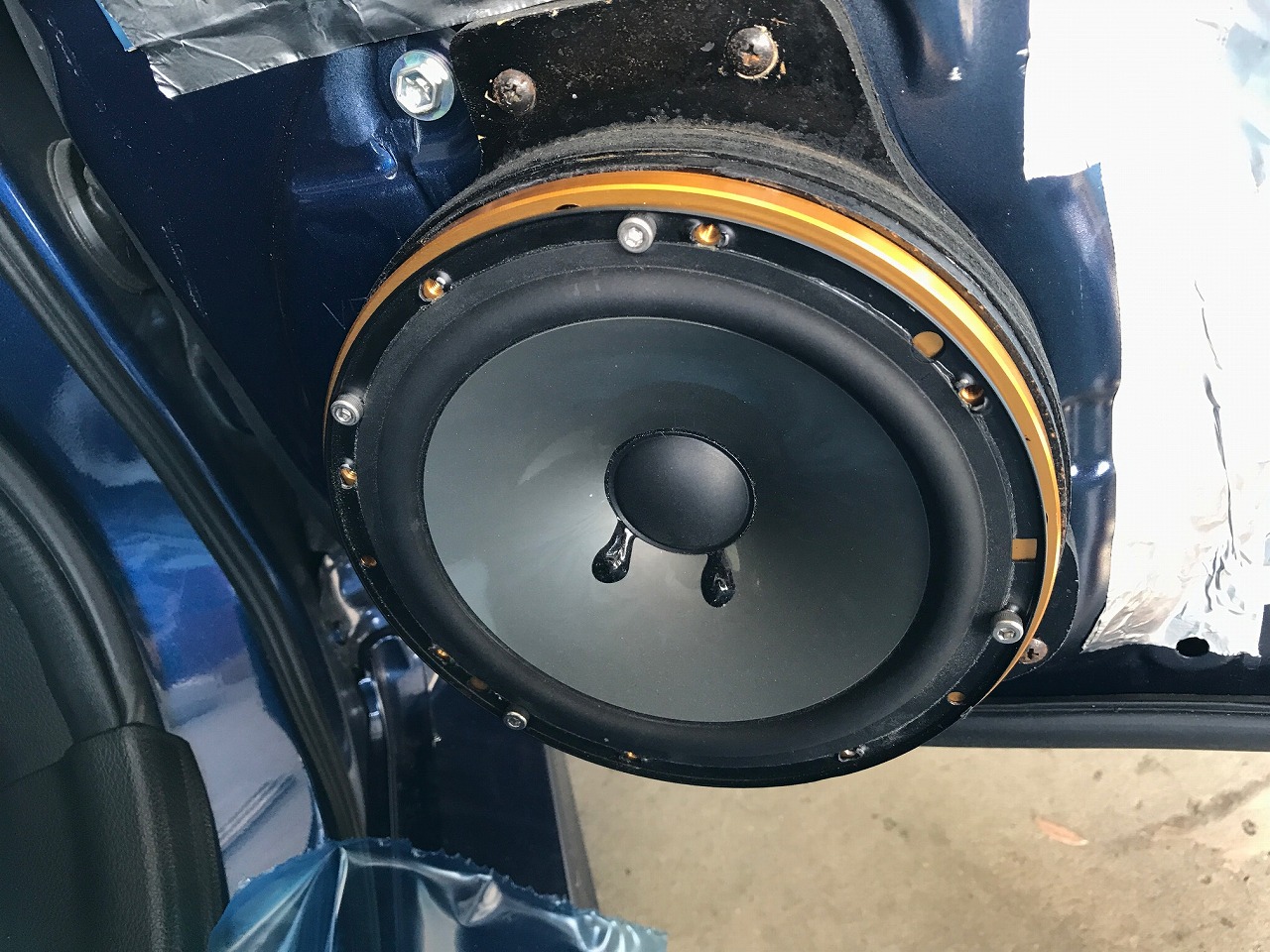 ドアトリムを外してインナーバッフルとスピーカーの間にPCD-1を装着