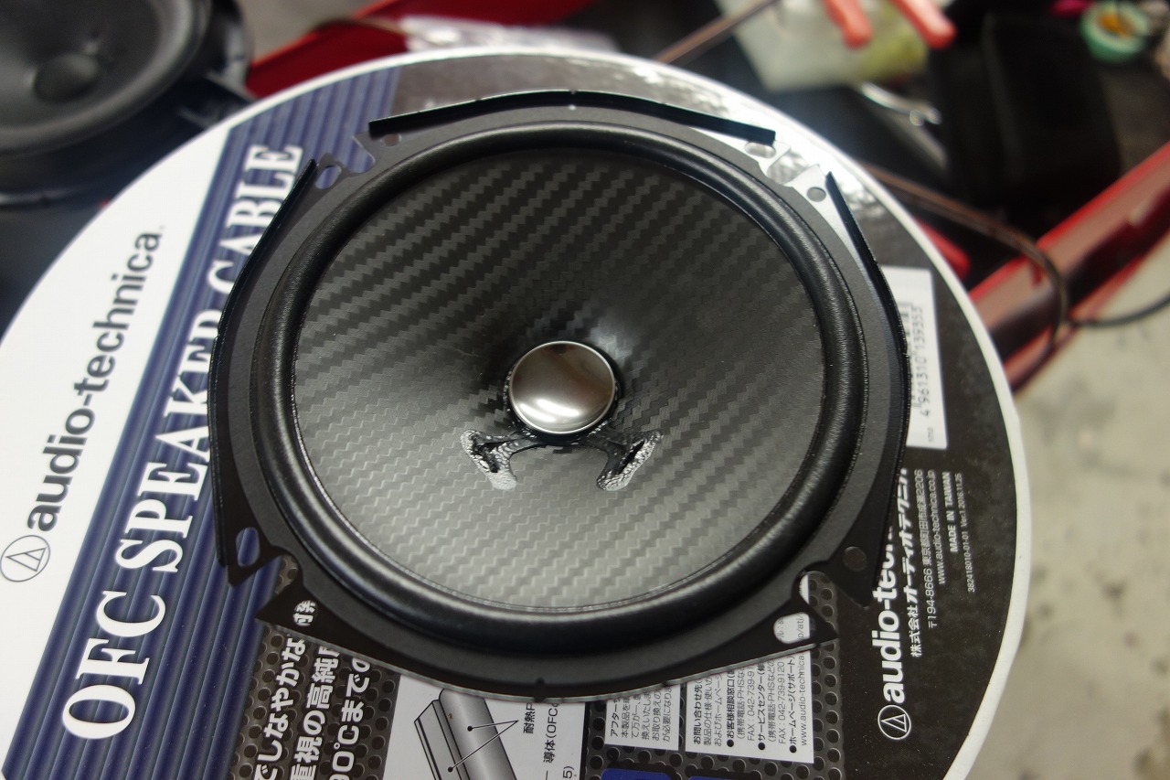 そこらへんの純正スピーカーとなんら変わりないですが!?ちなみに隣で作業してたカロッツェリア安いスピーカー(Fシリーズ)