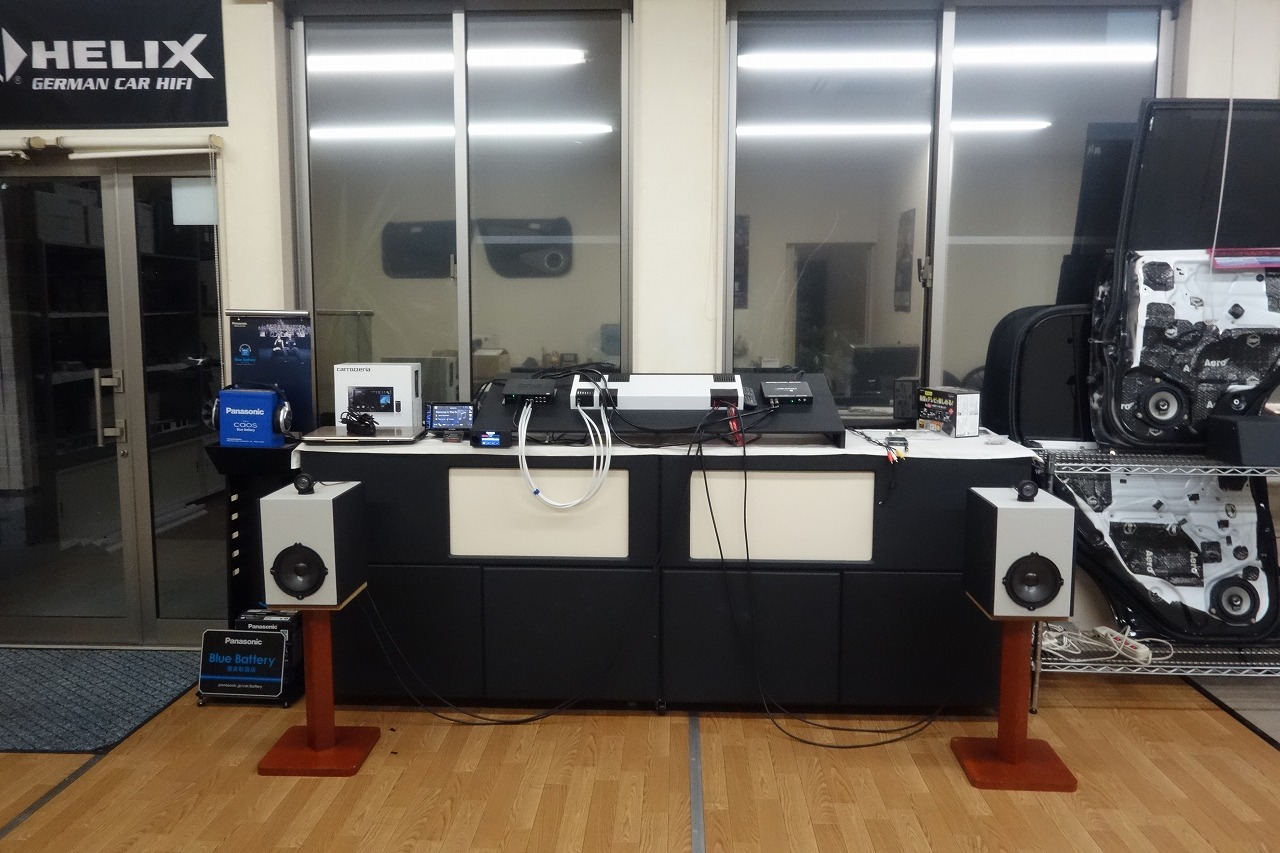 時間なくてなかなかお店の中に入れないですが外で聴けます(笑)ナビにDSP入れたらこんだけ変わる!ってのが聴けます、と2wayと3wayの比較試聴も可能ですよ