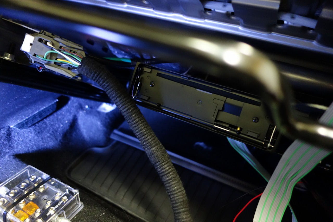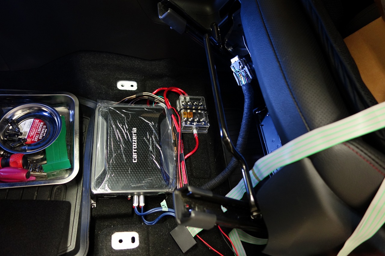 本体はシート下設置ですが満員御礼なのでシートに付けます