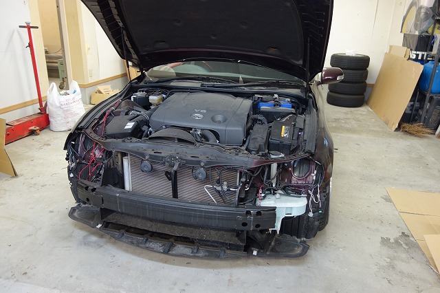 仕事の合間をぬって取り付けしているマークX!取り付けが終われば車検ですがこんな状態なので