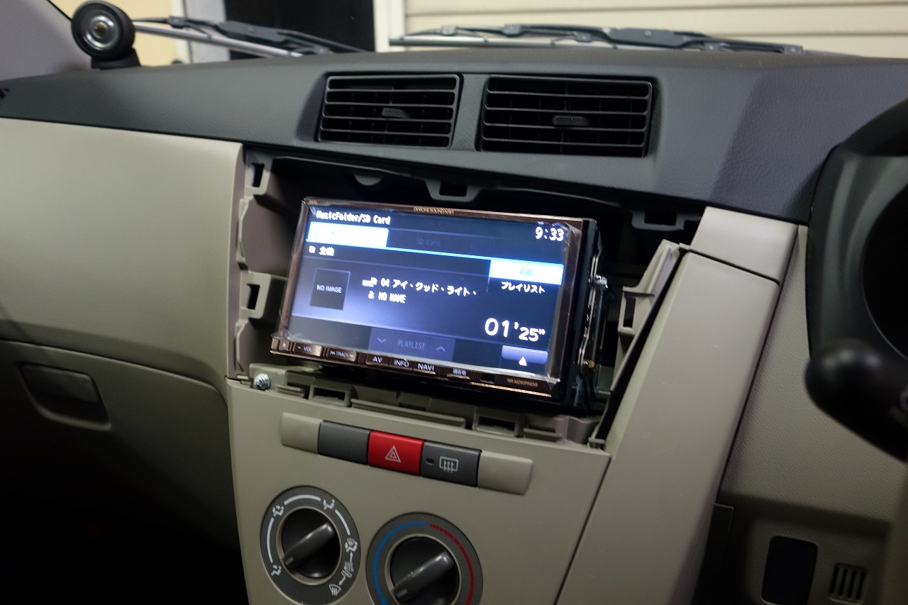 試聴会にともない店内に置いてあるAVIC-CZ902XSのデモカーミラジーノ