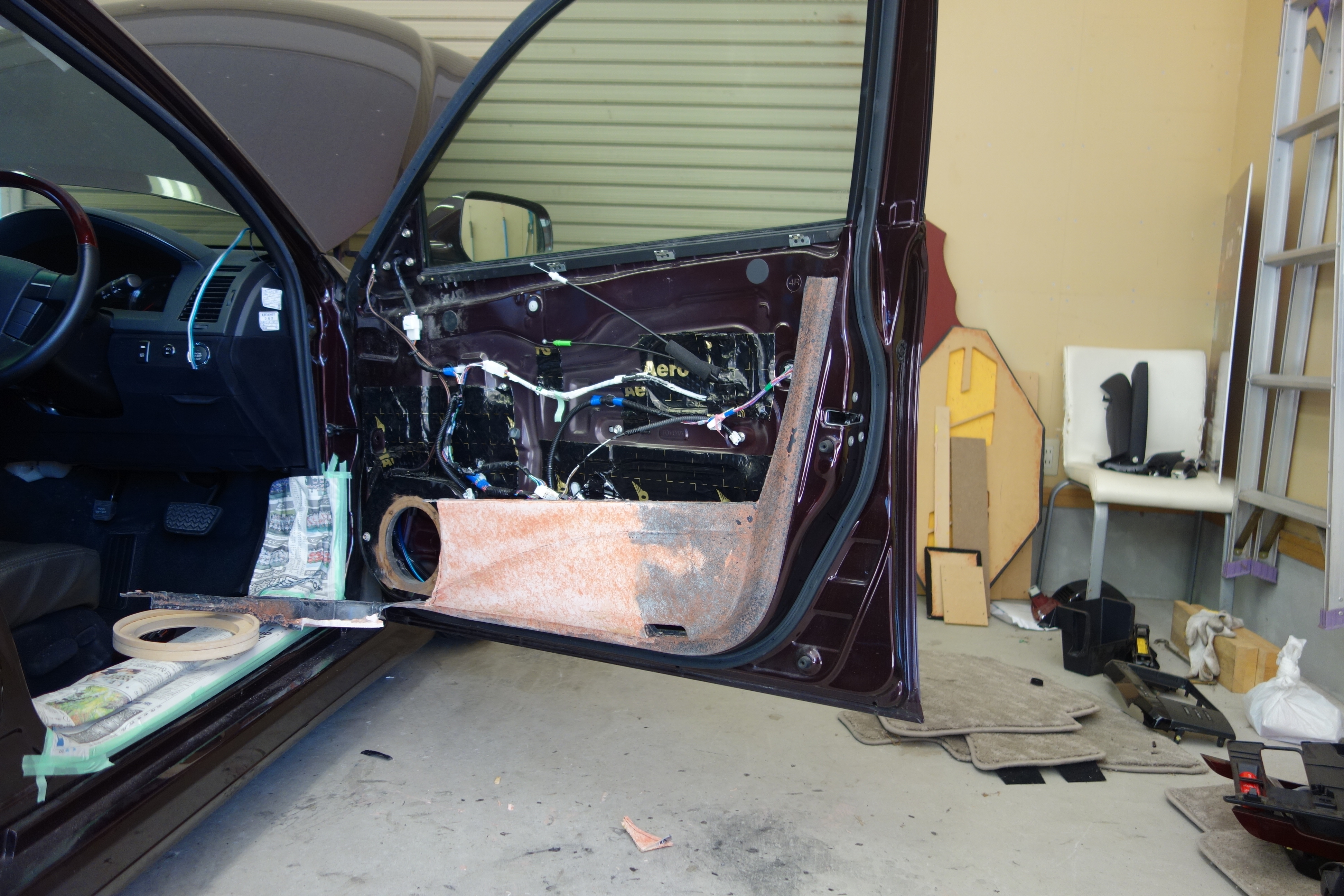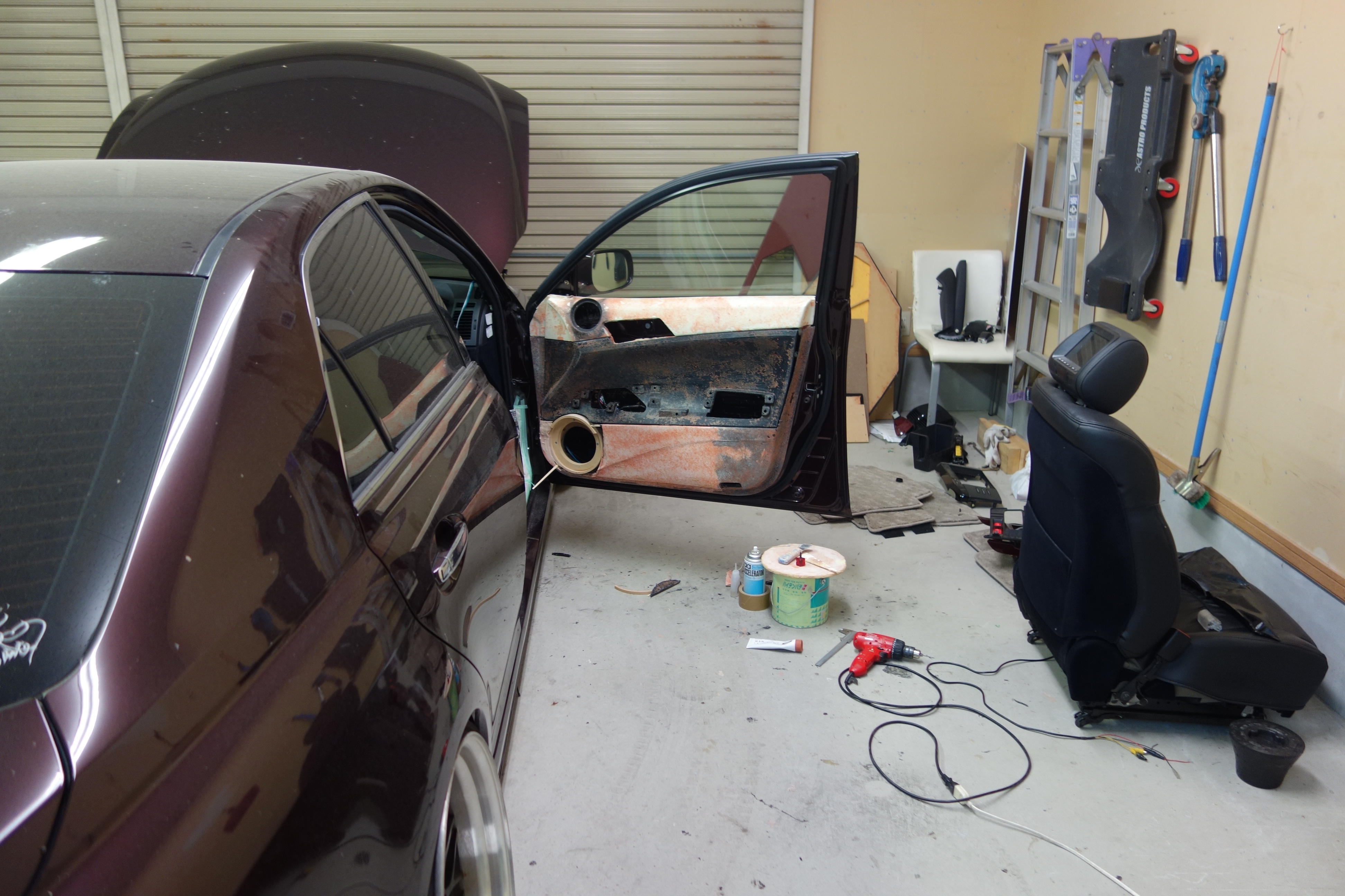 さて来月のハイエンドコンテストに出場するマークXのドアの加工、加工してるドアをまた加工で作りにくくてしょうがない汗