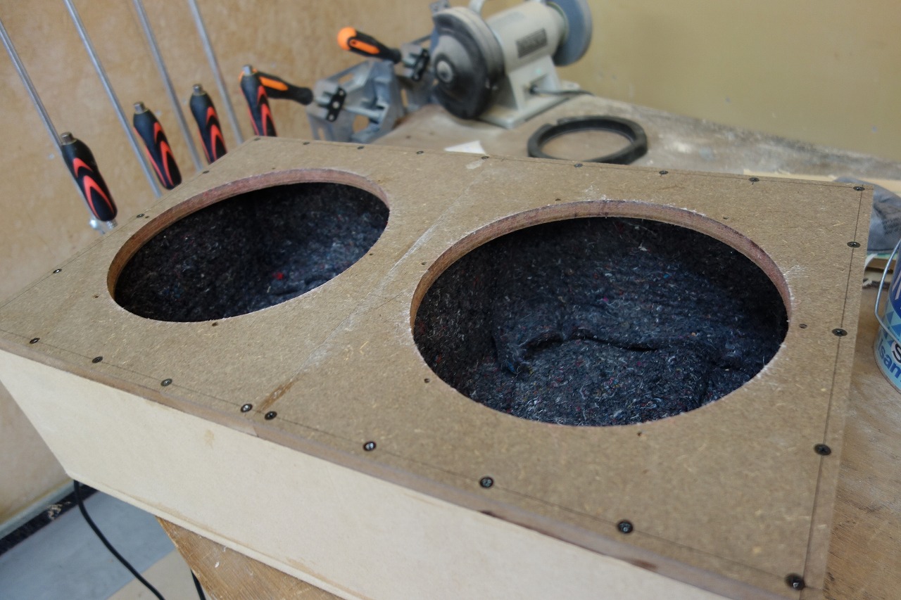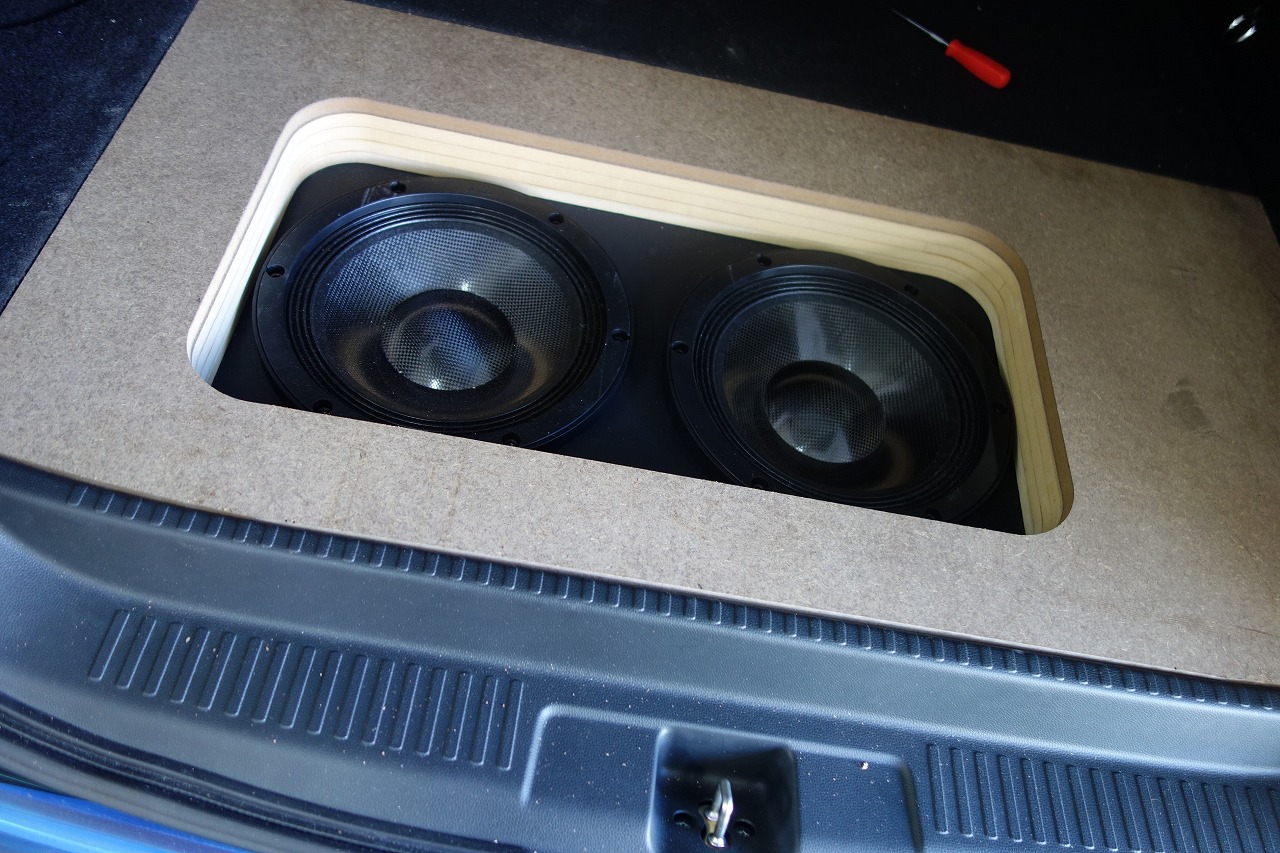 ラゲッジルームにはカロッツェリアTS-W1000RSが2発を入れます。まずはBOX製作