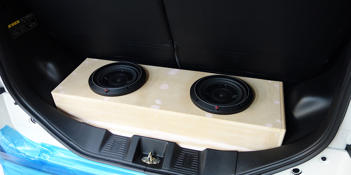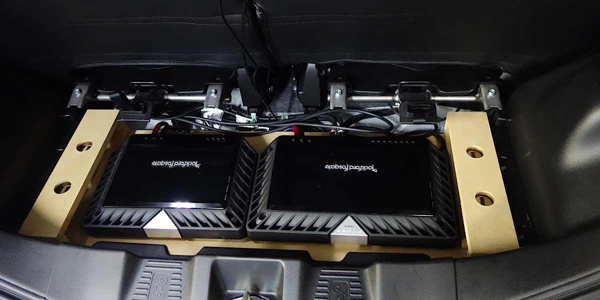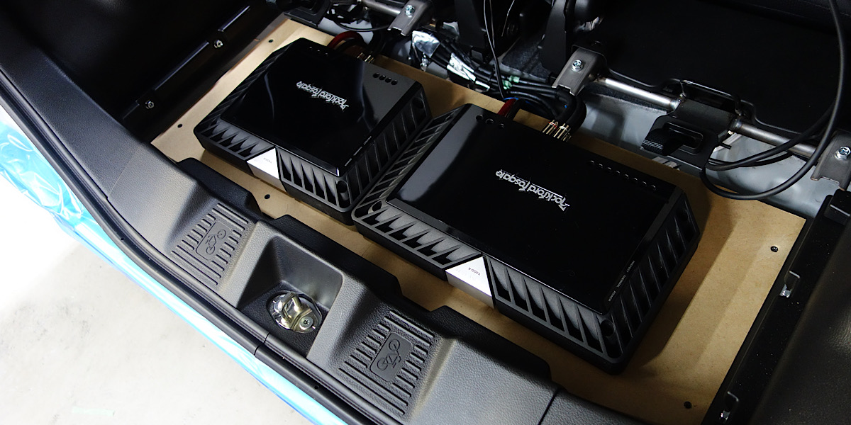 このアンプの下にDSP、電源ブロックなどを収納、さらにこの上に載せるため柱を立てて