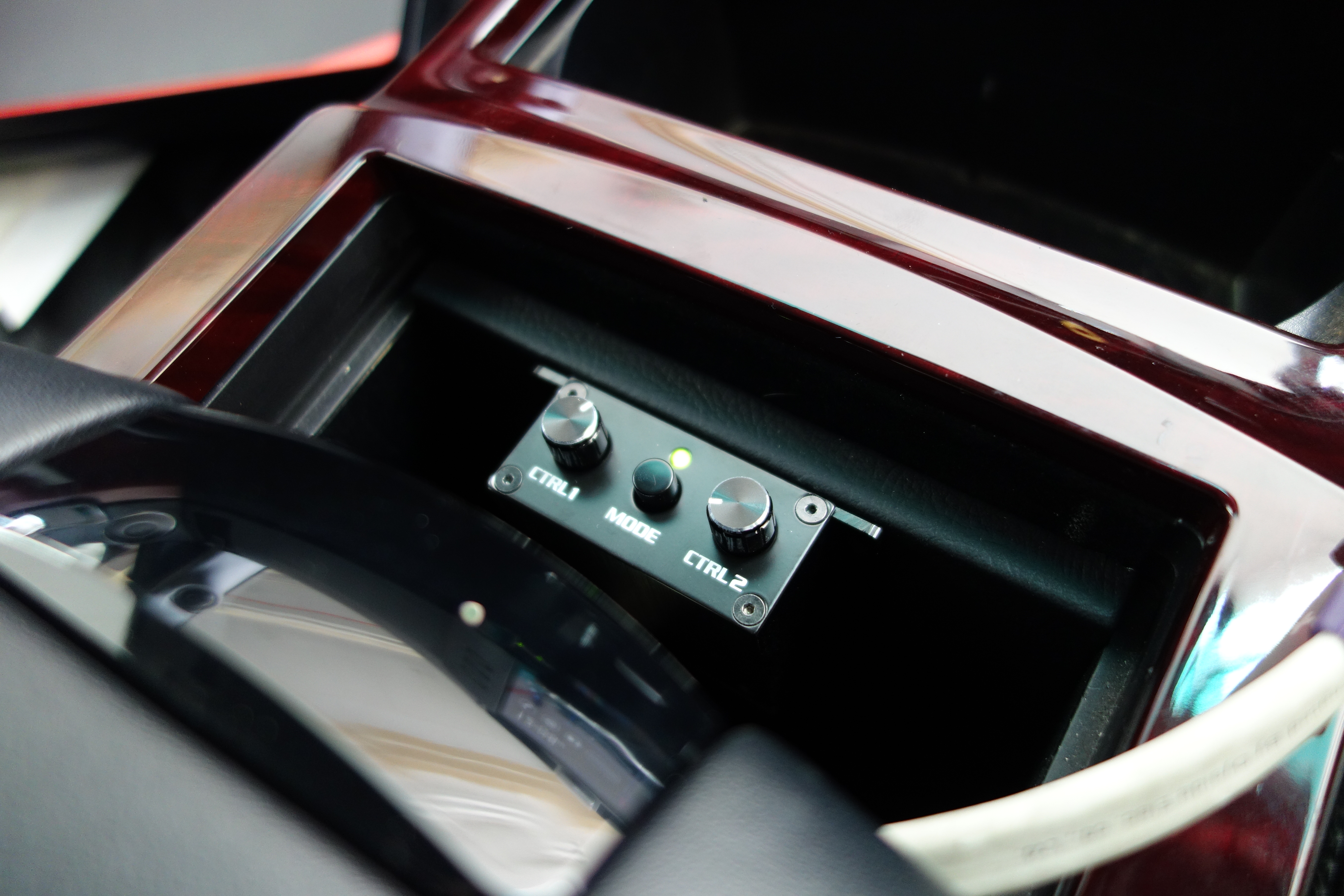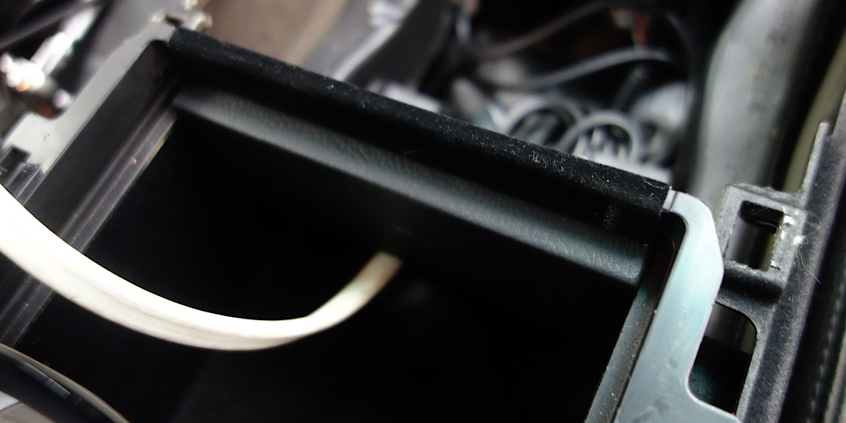 センターコンソールのこの部分に取り付けてボリュームが動かしやすいように間に木を入れてくれと何かと注文が多い!ご要望通りに木にレザーを貼ってハメ込む