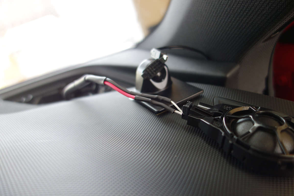 純正デッキの音声はキックパネル左右から取り出しミッドバスにはDSPから直接スピーカーに接続