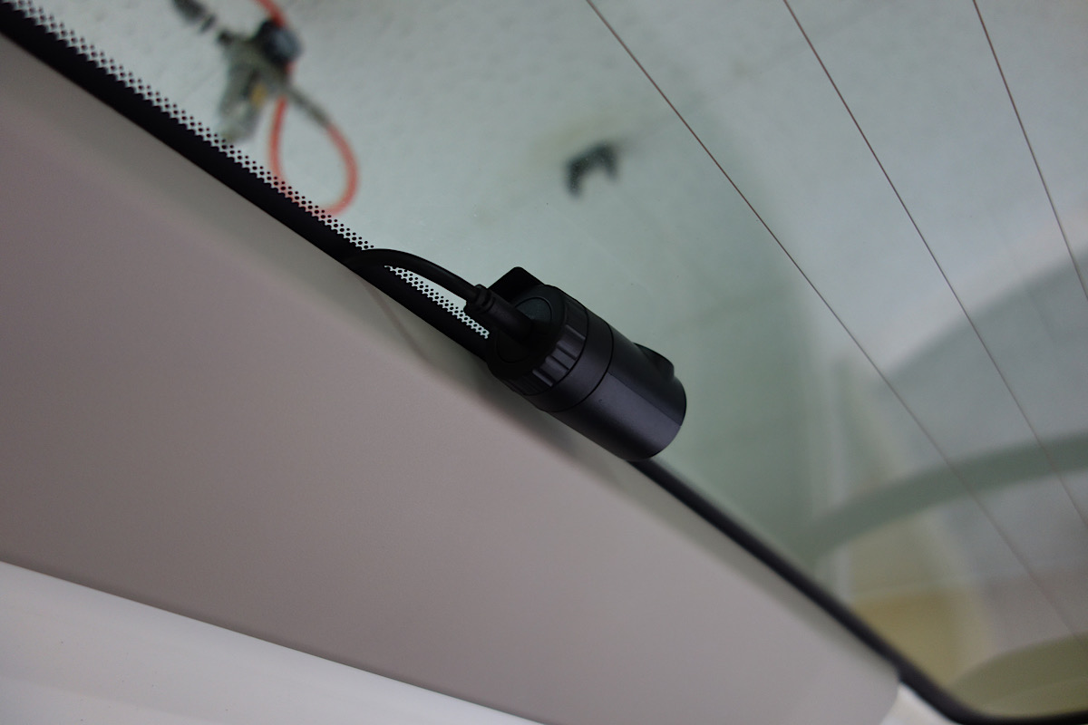 リアカメラはリアハッチのガラスに貼り付け、夜間も見えるカメラなのでプライバシーガラスでも映ります