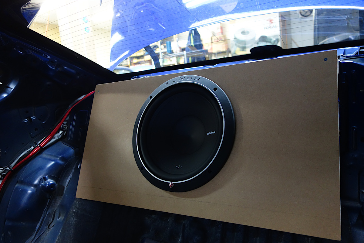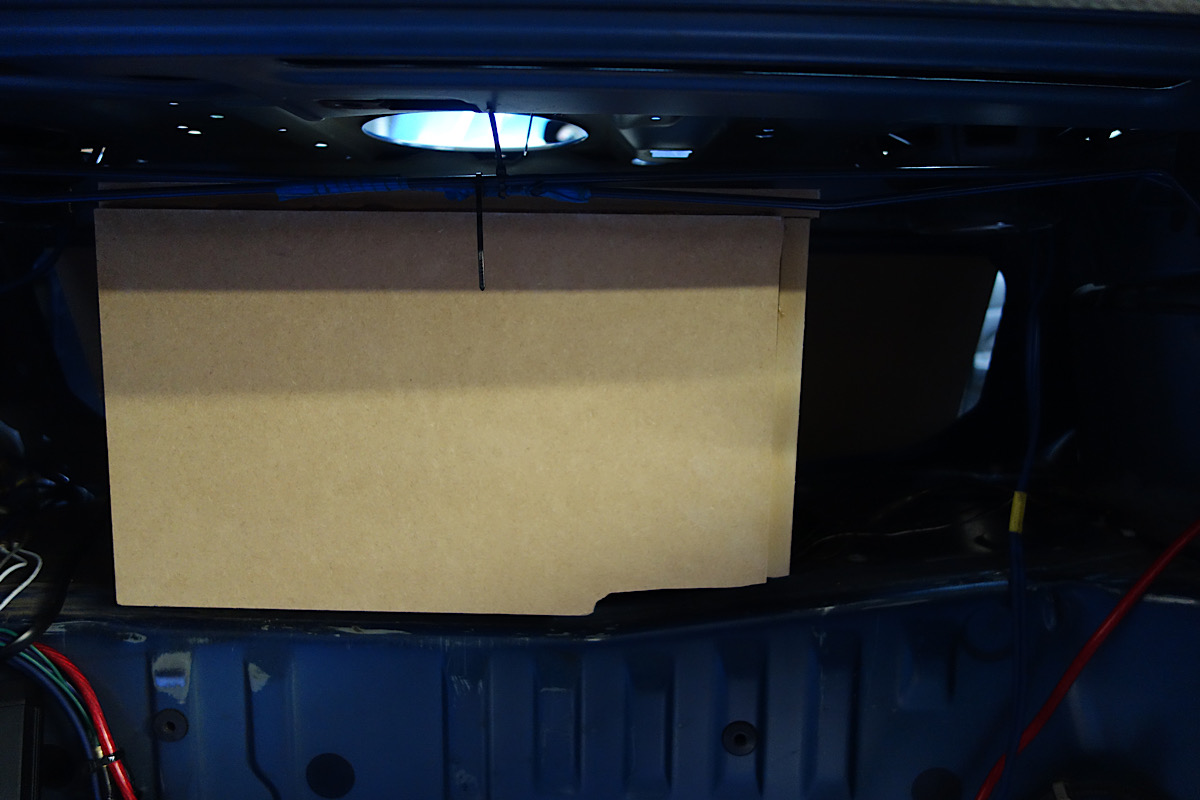 30cmのサブウーファーを入れるのに開口部が30cmもないので鉄板削除して平じゃないところにBOXを製作するので積み木状態です!隙間はパテで埋めてなんとかBOX完成