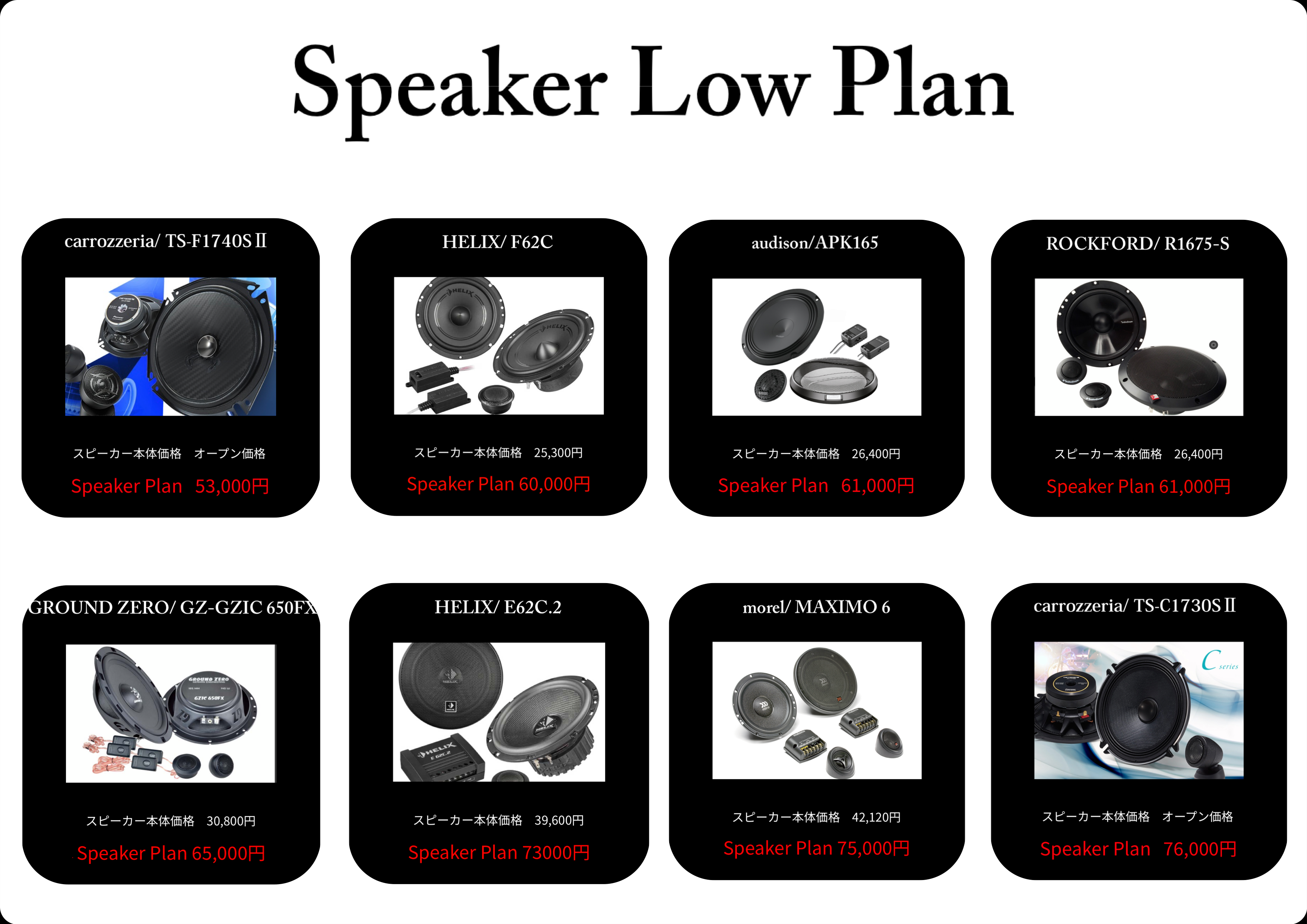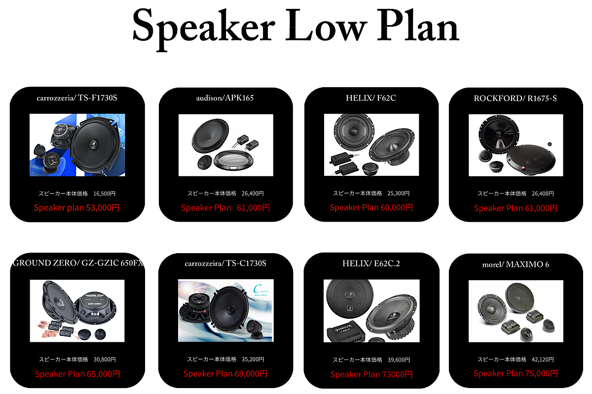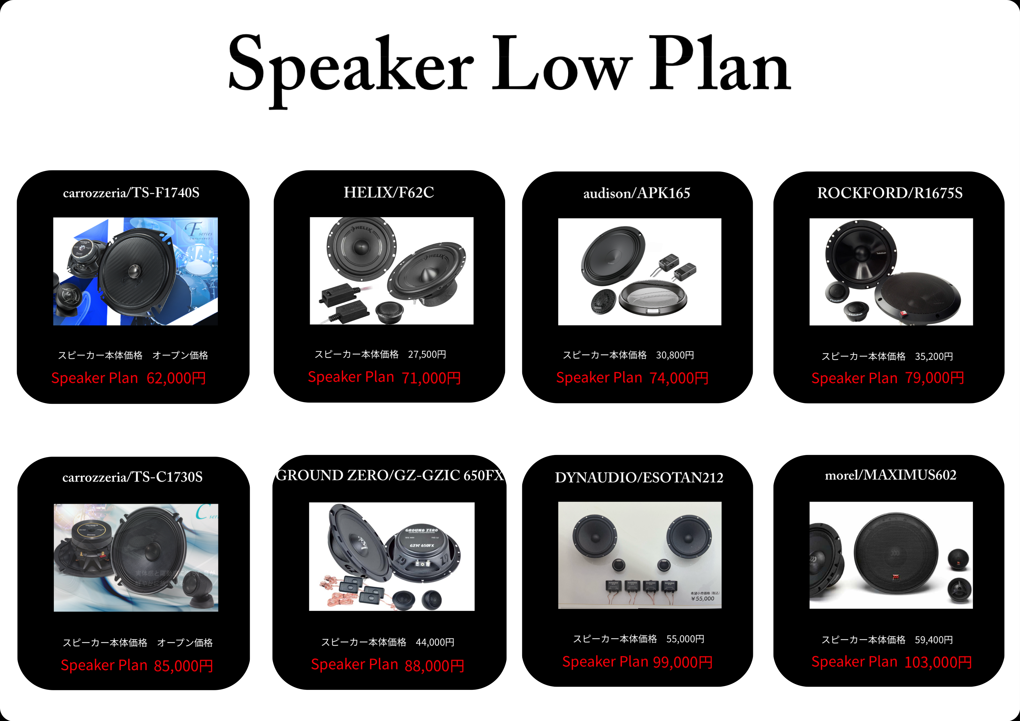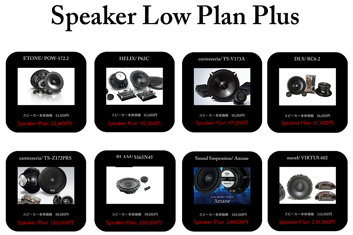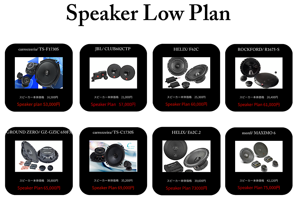 セット価格はスピーカー・スピーカーケーブル・デッドニング(LOW)・取り付け・消費税を含む値段になります(インナーバッフル別売)