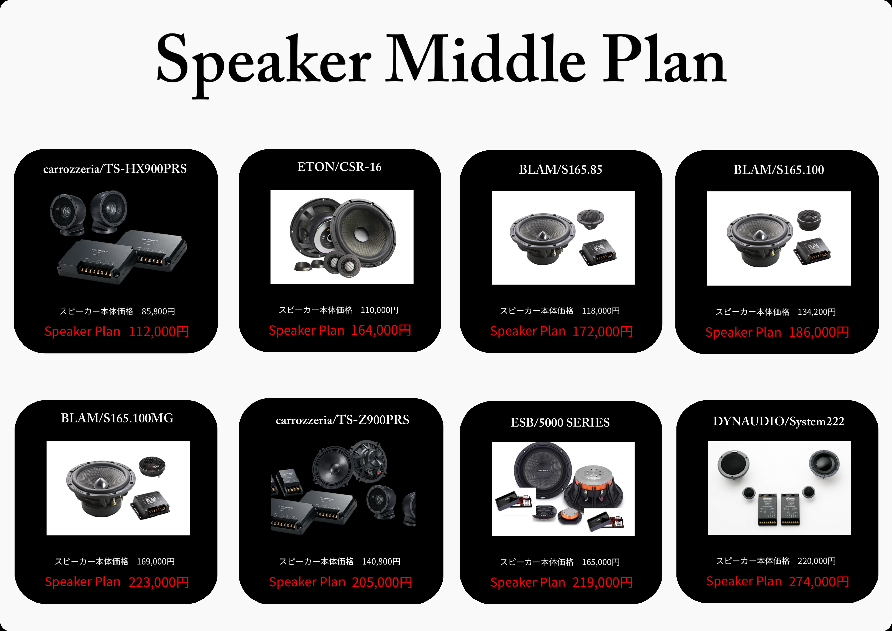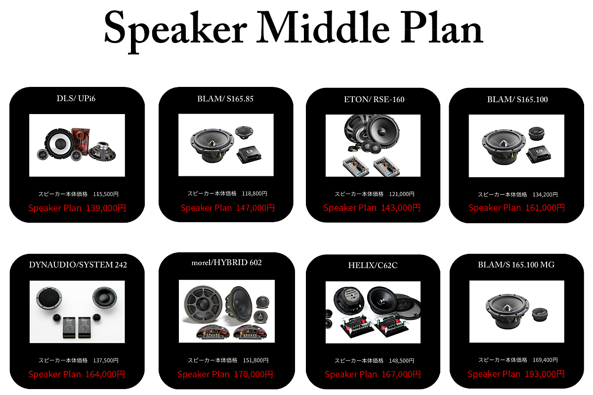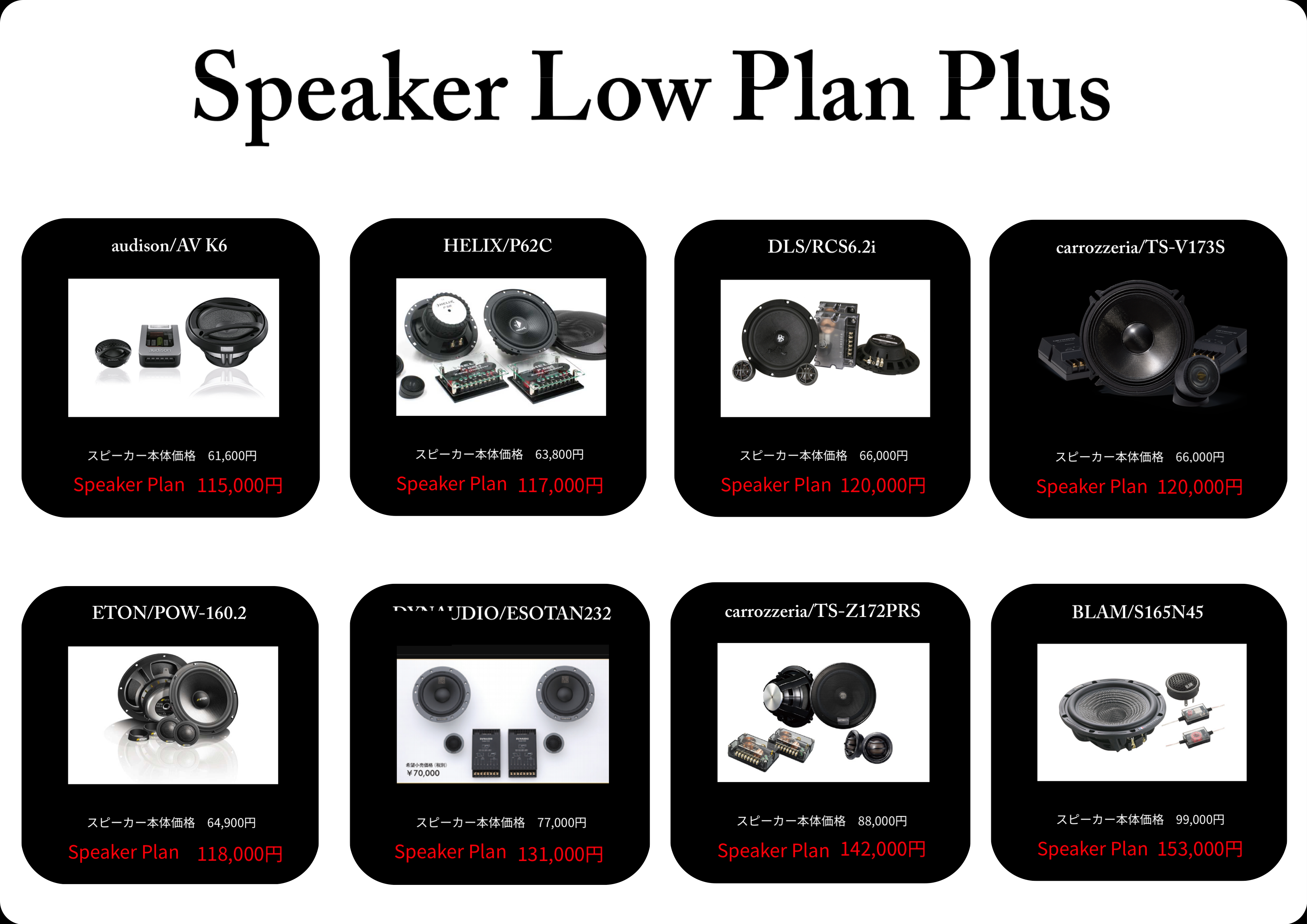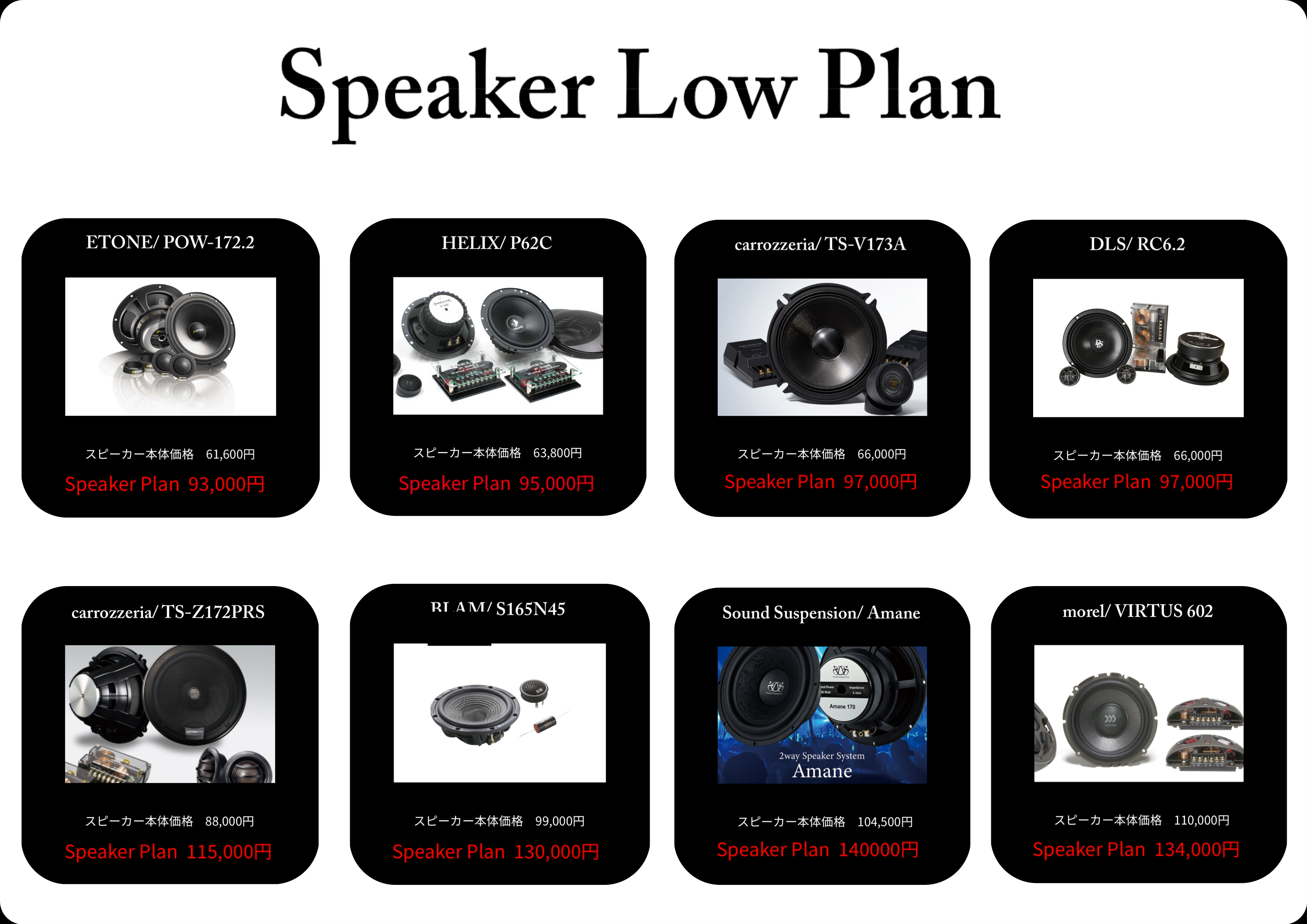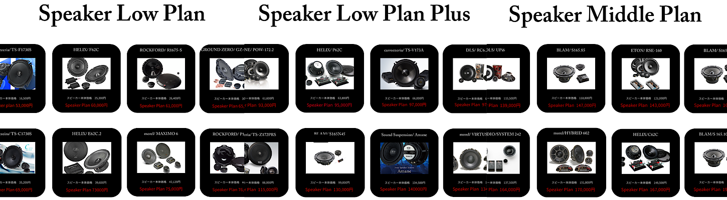 セット価格はスピーカー・スピーカーケーブル・デッドニング(LOW)・取り付け・消費税を含む値段になります(インナーバッフル別売)