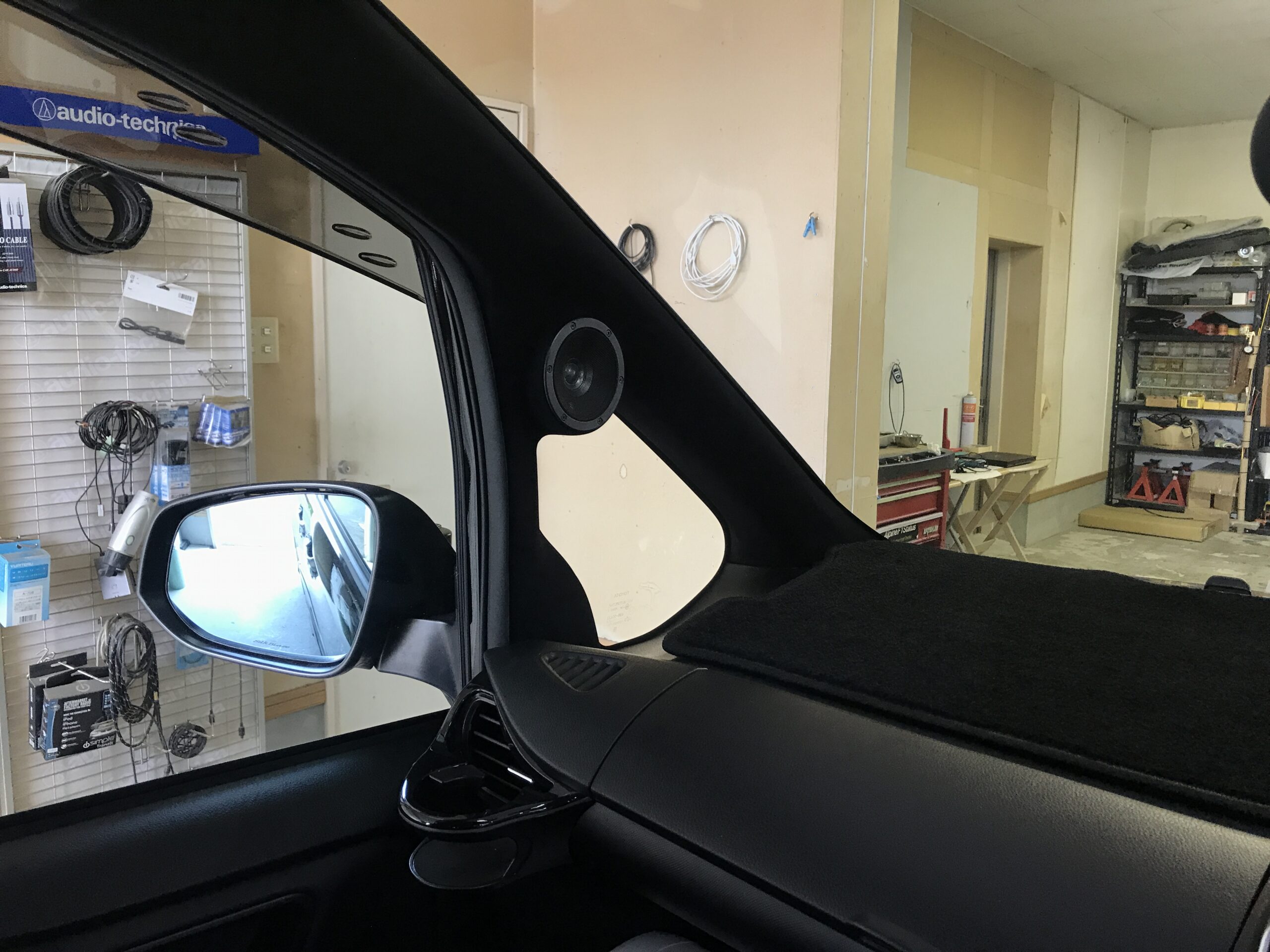 純正位置などにトィーターを装着しても問題はありませんがトィーターは指向性が強い高域を担当するスピーカーなので露出させて取り付けするの好ましいです。オリジナルで制作しますのでAピラー・ドア・ドアミラー裏など好みの場所に取り付けることが可能になりまたドアのミッドウーファーに近づけることにより車のより外側に装着することでステージは広がり音抜けの良い音質になります