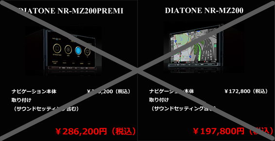 2016.10.29 サウンドナビ11月までの特別プラン NEW DIATONE SOUND・NAVI NR-MZ200PREMI(プレミ)・NR-MZ200が10月27日発売です! 100シリーズからの「速・音・美」を受け継ぎハイレゾもWAVファイルの読み込み出来るようになりました(USB・SD) また動画ファイルもUSB・SDで再生可能になり魅力も1ランクアップです(*^_^*)AUXも高音質に聴けるよう回路変更してあるので高音質DACとの組み合わせは最高だと思われます。 11月末日までの特別プライス! 新規一転 取り付け例サイト出来ました