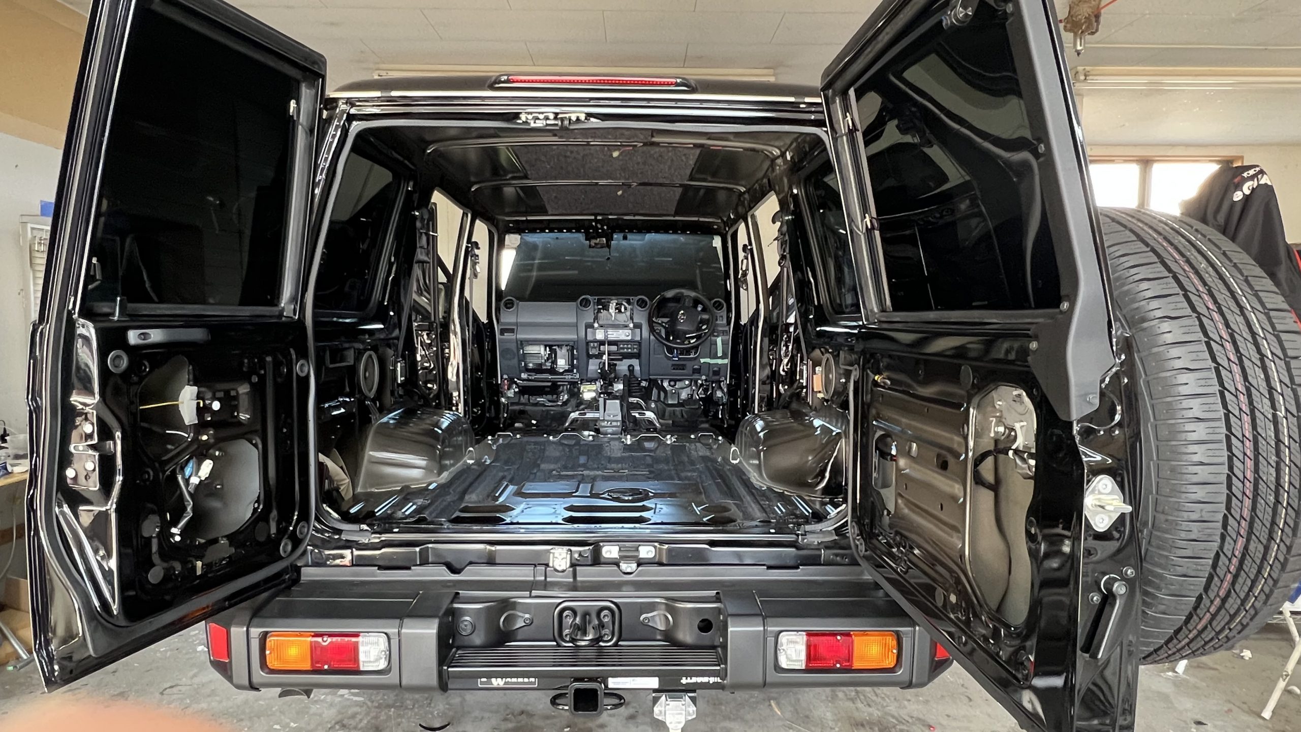 1月 08 2026 未分類 ランクル70 フルデッドニング ランクル70復刻版フルデッドニングです! 内装全て取り剥がして まずは天井 純正で貼ってある吸音材を剥がしてから制振材を全面貼っています ここから吸音材を貼る トリムを戻して天井完了 次にフロア ここから遮音材 クォーターも で遮音材 リアハッチインナー側 アウター側 リアドア インナー側 アウター側 フロントドア アウター側も貼ってますが写真撮るの忘れてました ボンネット 制振 遮音 フロントインナーフェンダー ここまで施工すると効果抜群です!つづく・・・ 問い合わせはLINEでも出来ます 未分類 ダイハツ トール ランクル70つづき