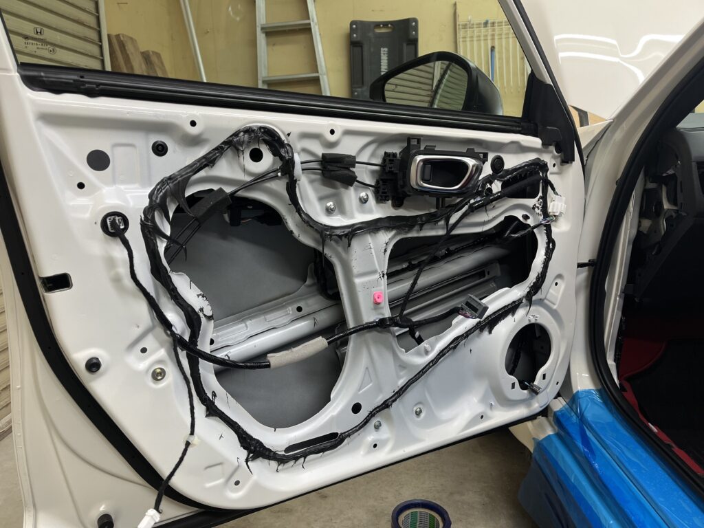 格闘しなが綺麗にしスピーカープラン用のデッドニングをしてスピーカーを取り付けます